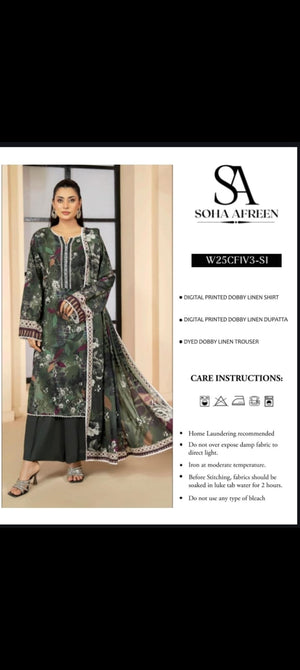 Soha Afreen Unstitched Dobby Linen 3-Piece - SA005